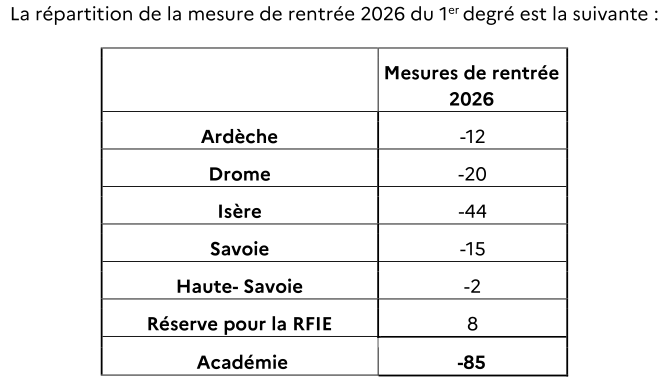 Cette année, il y aura dans l'académie de Grenoble : suppression de 85 postes de PE , suppression de 66 postes de professeurs du 2d degré (118 suppressions en collèges, et créations en lycées).